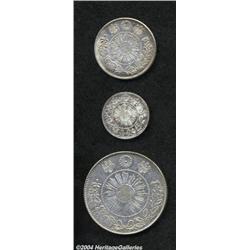 <B>Minor types as follows:</B></I> Meiji 3 (1870) 10 Sen, Shallow Scales, KM-Y2, lightly toned Unc; Meiji 4 (1871) 20 Sen, Deep Scales, KM-Y3, Choice AU; and a Meiji 4 (1871) 50 Sen, KM-4, cleaned XF/AU. 3 coins <BR><BR><B>Important notice:</B> Heritage usually auctions material at the rate of 200-250 lots per hour. On some occasions eBay Live bid software or the Internet may not be able to keep up with the pace of the auction. We recommend placing a realistic absentee bid now as insurance to avoid disappointment. Occasionally the auctioneer may eliminate or reject an eBay Live bid, and the auctioneer may also reopen a lot after the close of the eBay live bidding (usually because we missed an audience bid), and may reject your bid even if it shows you as the winning bidder. By bidding via eBay Live, you agree that Heritage may award the lot to another bidder at its sole discretion under the circumstances described above or any other reasonable circumstances. Since eBay bids are not shown to us until we open the lot on the floor, we treat those bids just like floor bids. In most cases the floor responds before the eBay bid is presented to us, due to Internet lag time, so for consistency we have made it a policy that floor bids are always considered first over tie eBay live bids. Also please note that all Heritage lots purchased through eBay Live carry a 20% Buyer's Premium. Please make sure you read the Terms and Conditions before you bid.