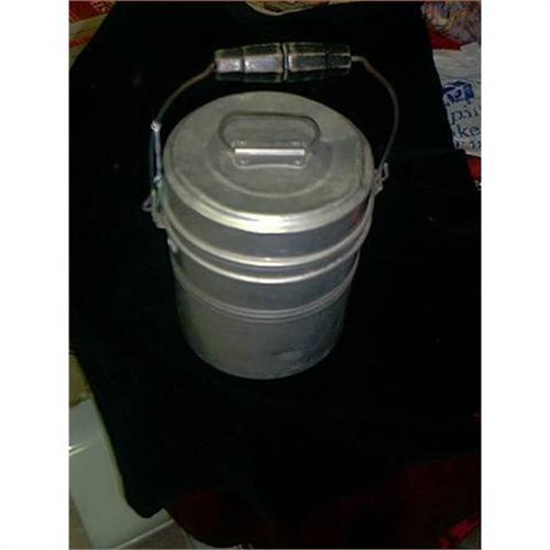 The popular Aluminum Minors lunch box, made by Comet. Made in USA and is 15" High with handle up, or 10" H X 8" Diam. All wooden handle and pot insert, comes apart in three parts. It does show some wear and a few small dings, but all in all, in really nice condition. No holes or major dings. I have not seen many in 47 years of doing antiques, so I kind of consider it a rare find to get one, especially in this kind of condition. Usually you see some every now and then, but they are so banged up, not worth playing with, as minors just throw them anywhere, and they get all banged up.This one is nice for you collected who collect lunch boxes, and a great add to any collection. Hope you like it.