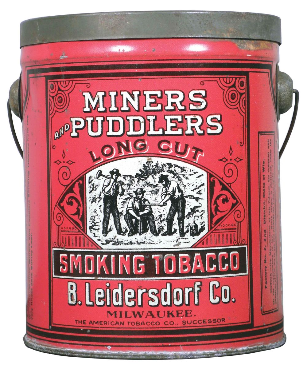 Minors and Puddlers Smoking Tobacco Tin. B. Leidersdorf Co. Milwaukee, WI. A dent on the side and a few paint flecks otherwise very good condition. ^ 1/2 inches tall. Start Price $30