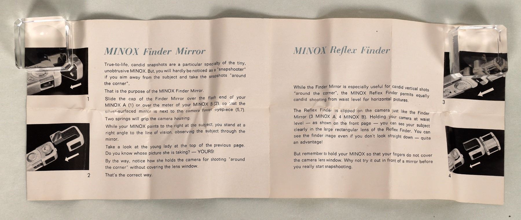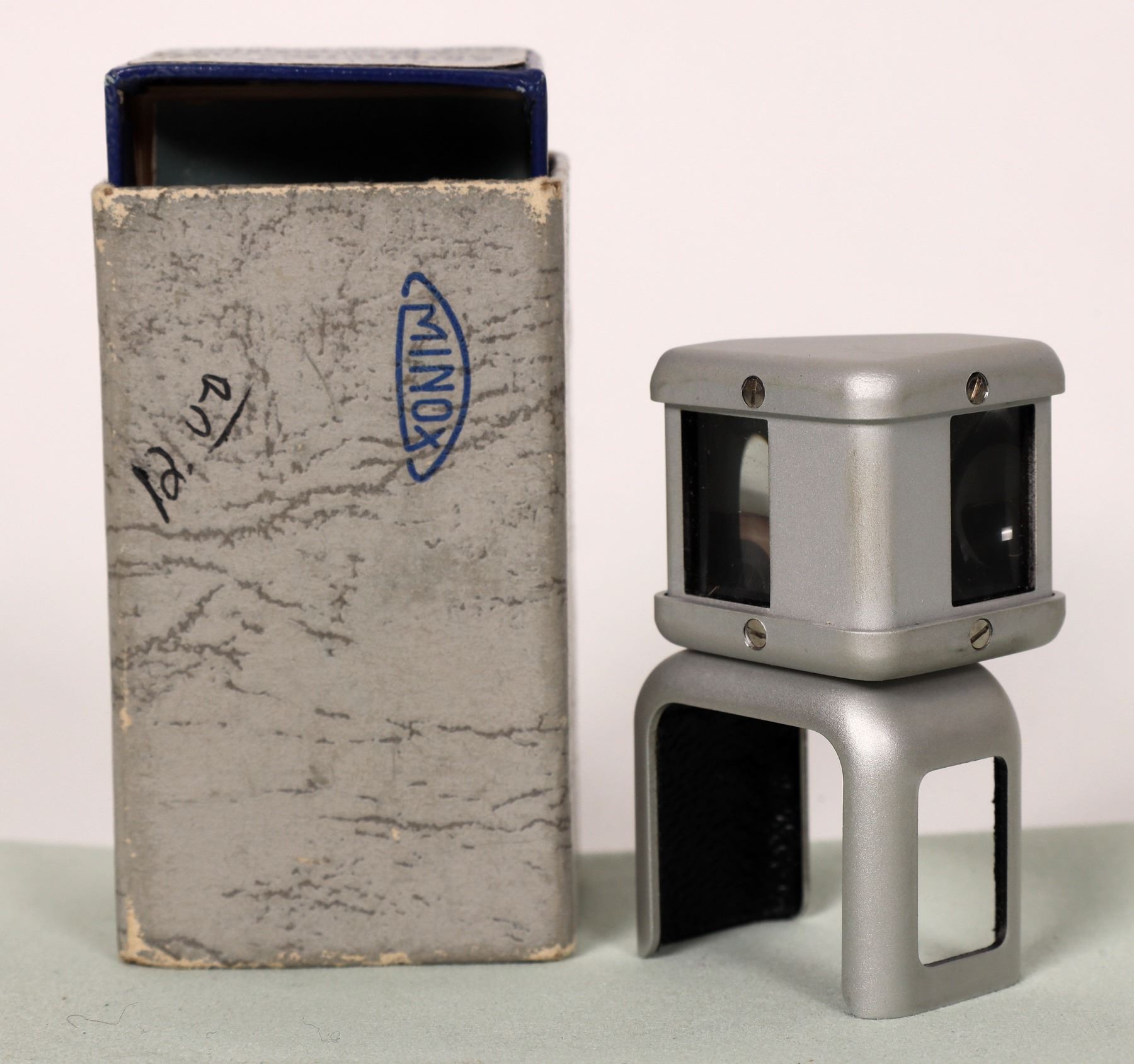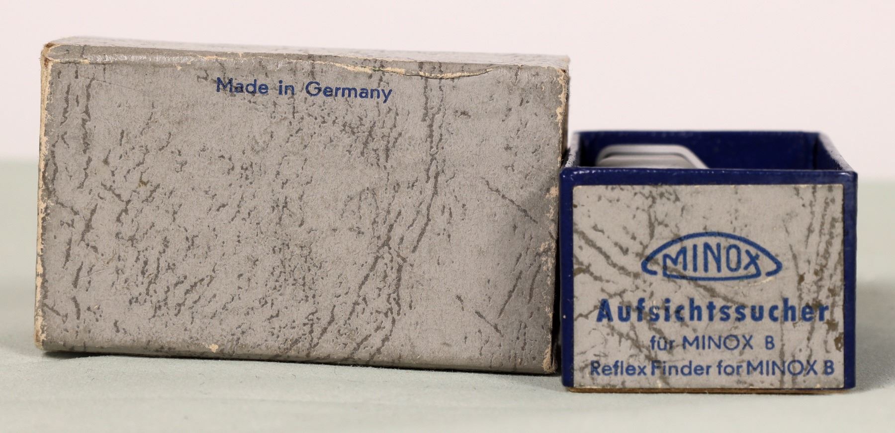 Made in Germany, in original box, with brochure. Minox reflex finder for waist level or candid, right angle photos. Can be used for shooting around corners.