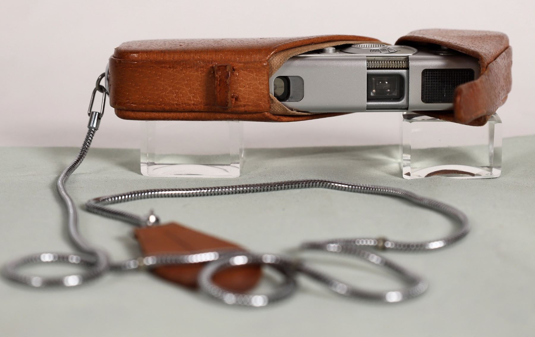 Wetzlar, Manufactured in Germany circa 1958. Light tan pigskin case, with measuring chain. The model B was the first subminiature camera with a built-in light meter that did not require batteries. Based on a selenium cell, it converted light into electricity, and drove the meter directly. That made it 15 mm longer than its predecessors, the Minox Riga and Minox-A. The Minox-B was by far the most popular of all Minox subminiature cameras, with 384,327 units manufactured between 1958 and 1969. For many years Minox-B was the worlds most famous and widely used camera for espionage photography right until the end of the Cold War in the early 1990s. Calibrated in meters. Complan f: 3.5. f= 15 mm lens. (Serial number 609134)