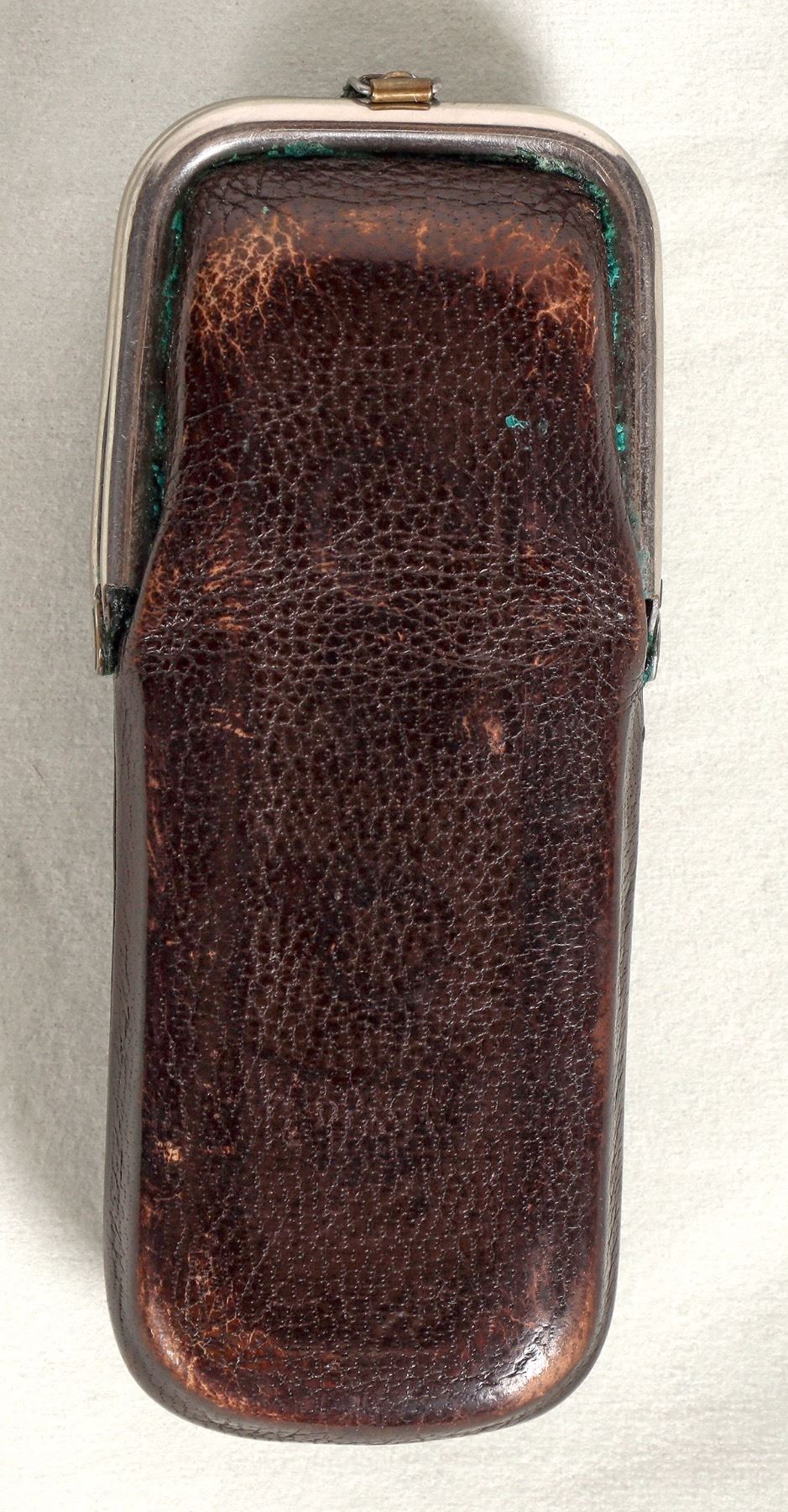 Manufactured in Riga, Latvia circa 1938, the VEF Riga has a three-element flat film plane lens. Rare purse type case. Reportedly taken off a German soldier in 1945 by an O.S.S. agent. The dimensions of the Minox subminiature camera are: 80 mm ◊ 27 mm x 16 mm; weight: 130 grams. Calibrated in feet. Invented by Walter Zapp in 1936, production began in Riga at VEF, running from 1937 until 1943. Minostigmat 1:3,5 F=15mm lens. (Serial number 05628)
