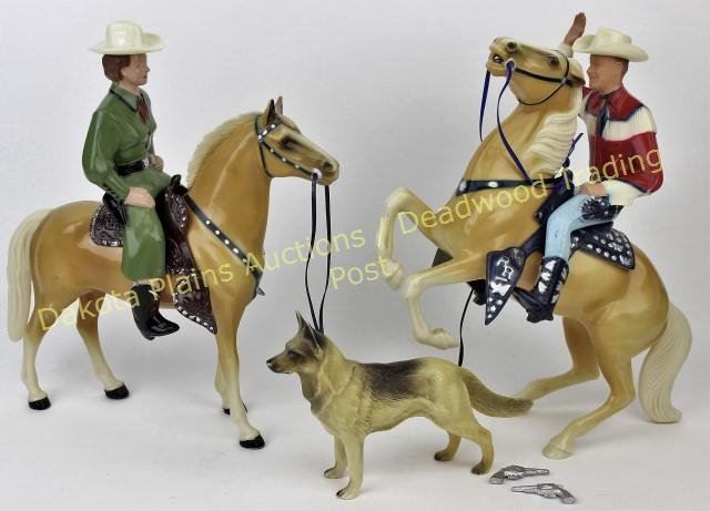 made by Hartland Plastics, complete with trigger, buttermilk, and bullet, both cowboy and cowgirl hats, saddles and Roys guns intact, excellent condition, from original owner, trigger standing 9.5" tall. Est.