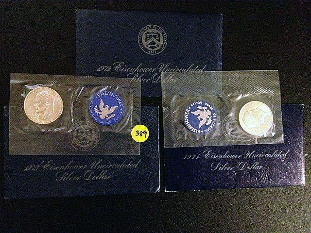 3 Mint Sets; 1971, 1972, 1973 Eisenhower Uncirculated Silver Dollars
