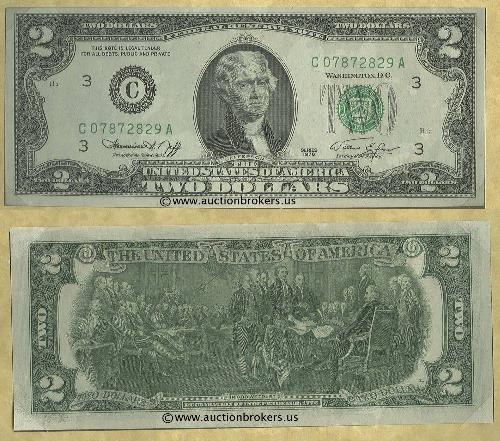 Mint $2 bill in commemorative first day binder; 1976 series Phila branch