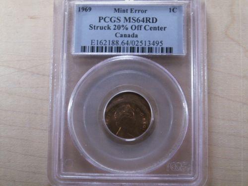 Mint Error 1969 1¢ Struck 20% off center, PCGS MS64Red, another interesting error. Should be viewed!