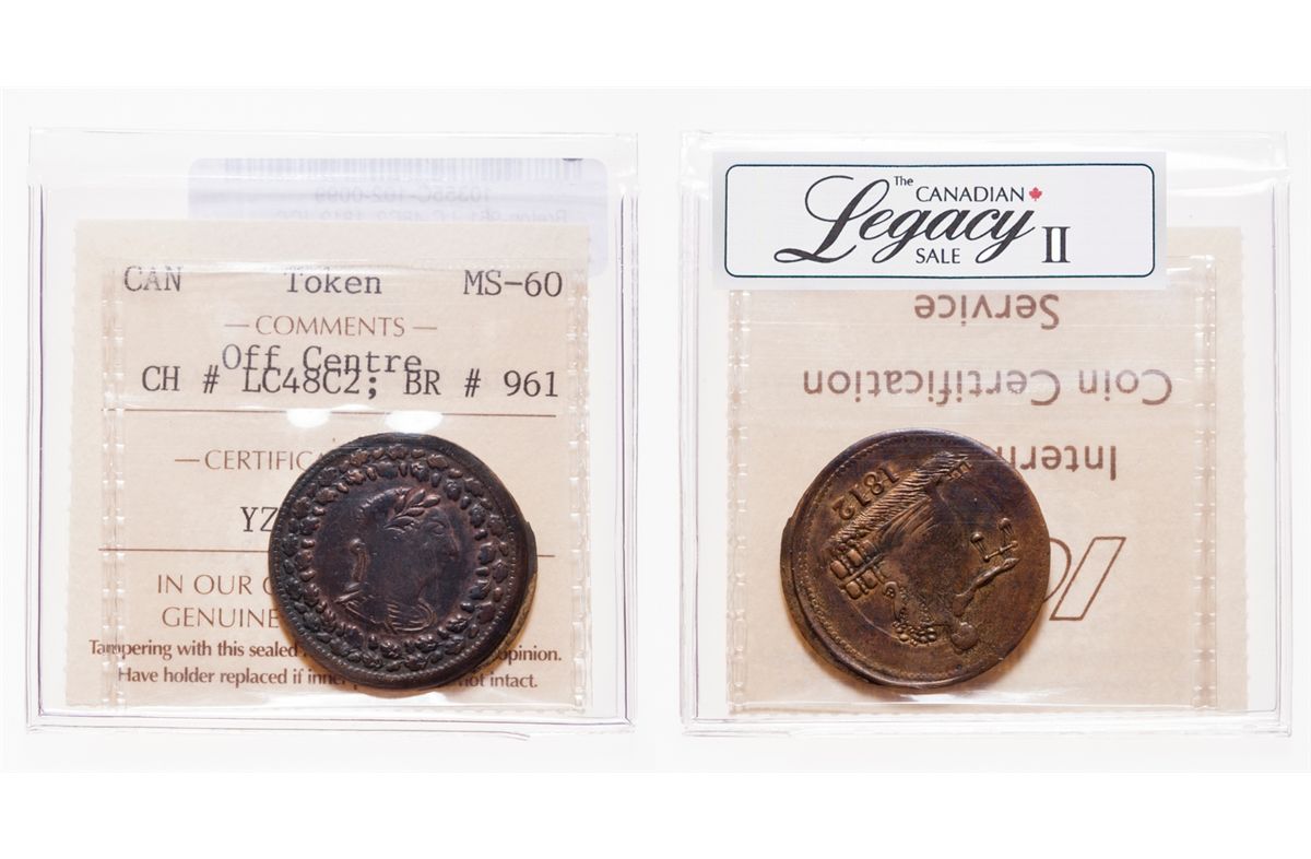Breton-961. LC-48C2. 1812. Tiffin Token, Clockwise, Brass. ICCS graded Uncirculated. Off-Centre Strike Error.