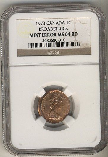 Mint Error Canada 1973 1¢ Broadstruck NGC MS64RD.