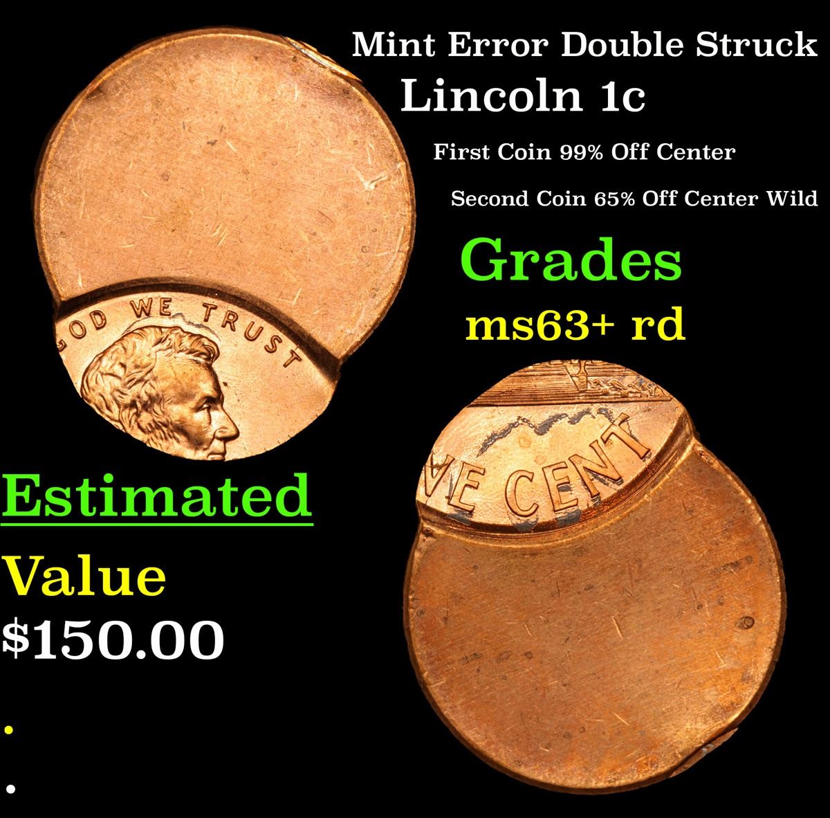 Mint Error Double Struck Lincoln Cent 1c Grades Select+ Unc RD.
