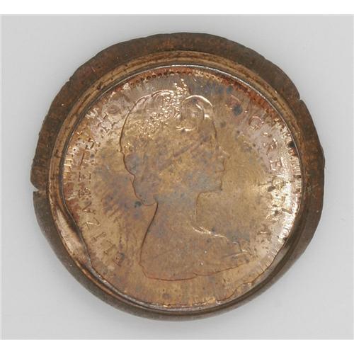 <B>Mint Error Elizabeth II Cent ND, </B></I>deeply capped die strike creating an uniface obverse. Lustrous UNC and very entertaining!<BR><BR><b>Shipping:</b> Coin/Currency (<a target="_blank" href="http://www.heritageauctions.com/common/shipping.php">view shipping information</a>)