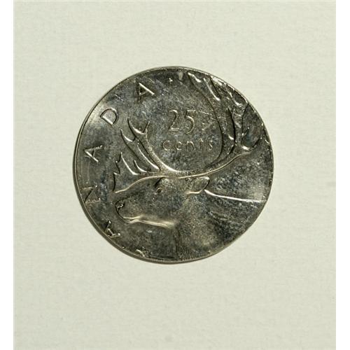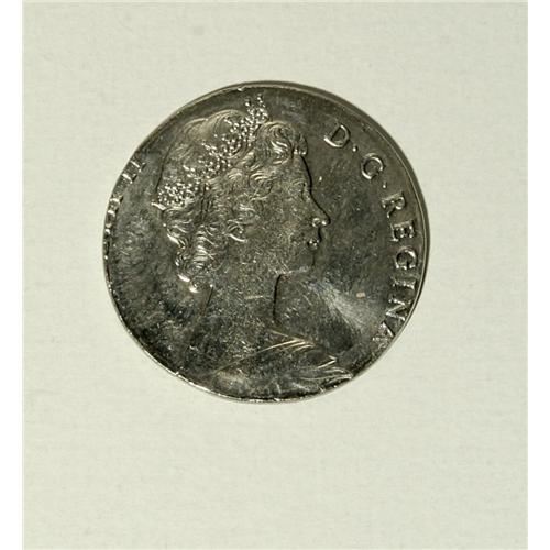 Mint Error Elizabeth II Quarter on Dime ND, a very scar