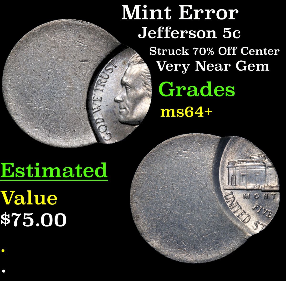 Mint Error Jefferson Nickel 5c Grades Choice+ Unc.