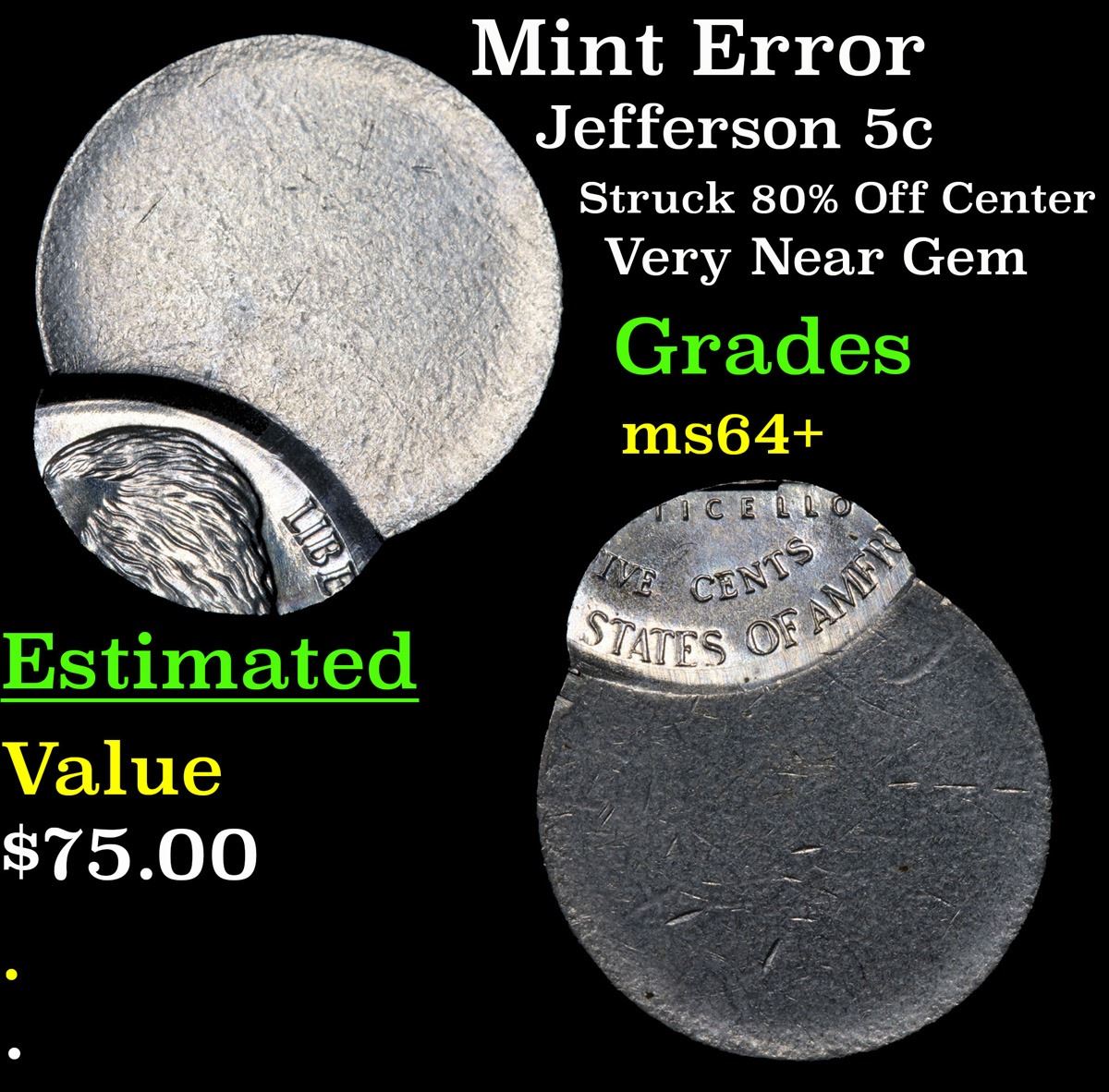 Mint Error Jefferson Nickel 5c Grades Choice+ Unc.