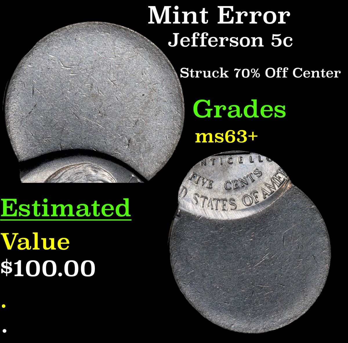 Mint Error Jefferson Nickel 5c Grades Select+ Unc.