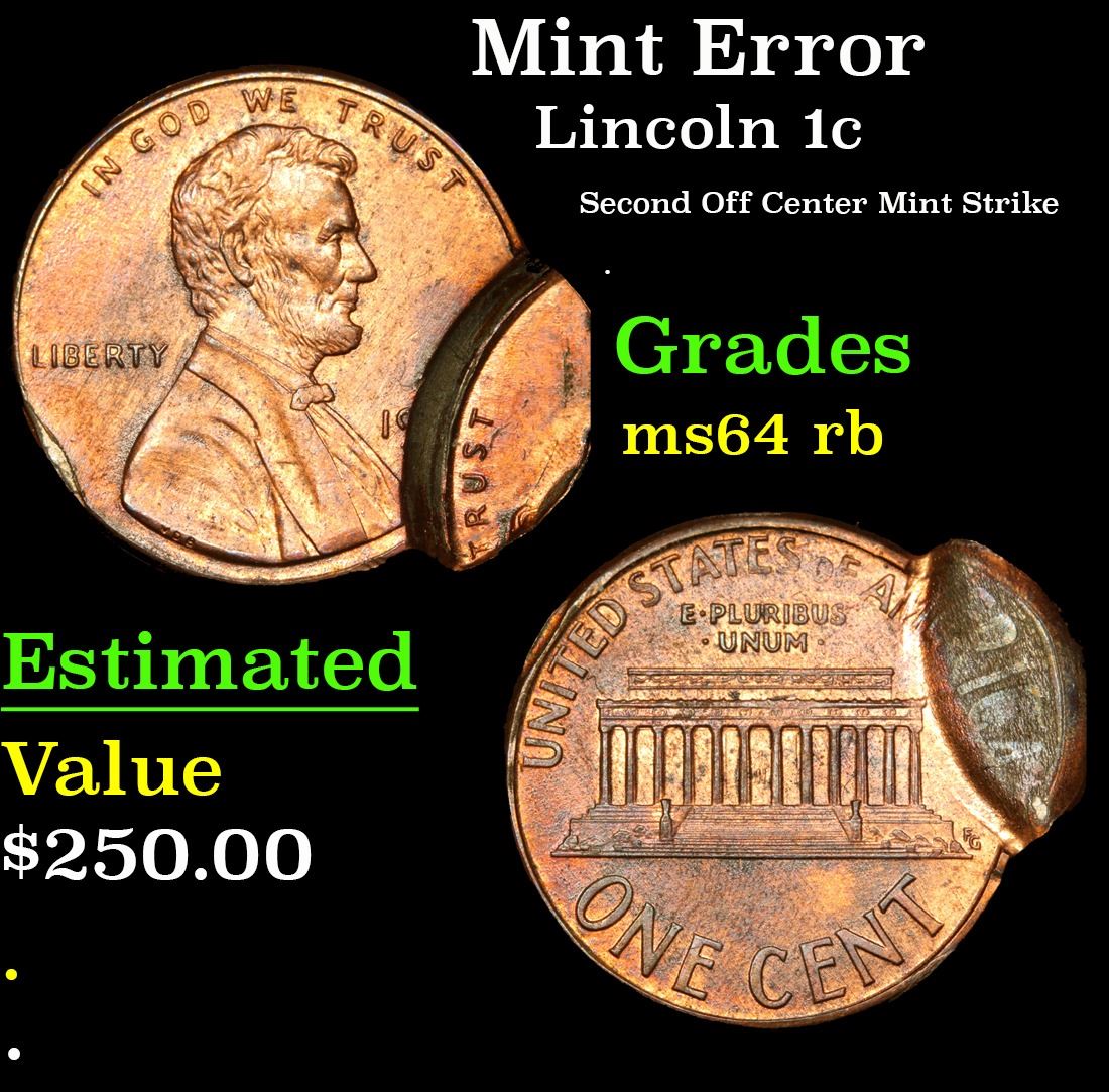 Mint Error Lincoln Cent 1c Grades Choice Unc RB. Second Off Center Mint Strike