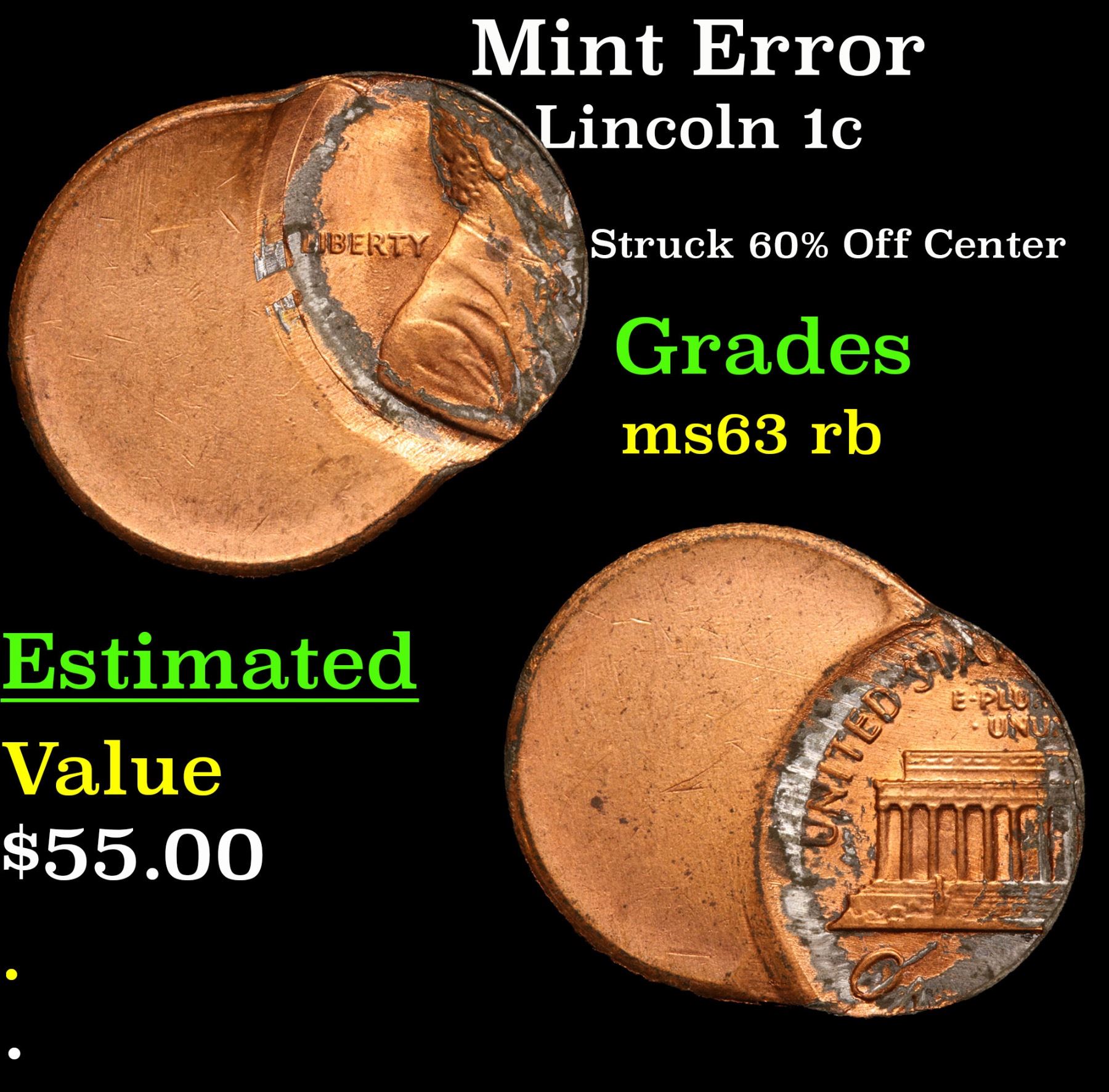 Mint Error Lincoln Cent 1c Grades Select Unc RB.