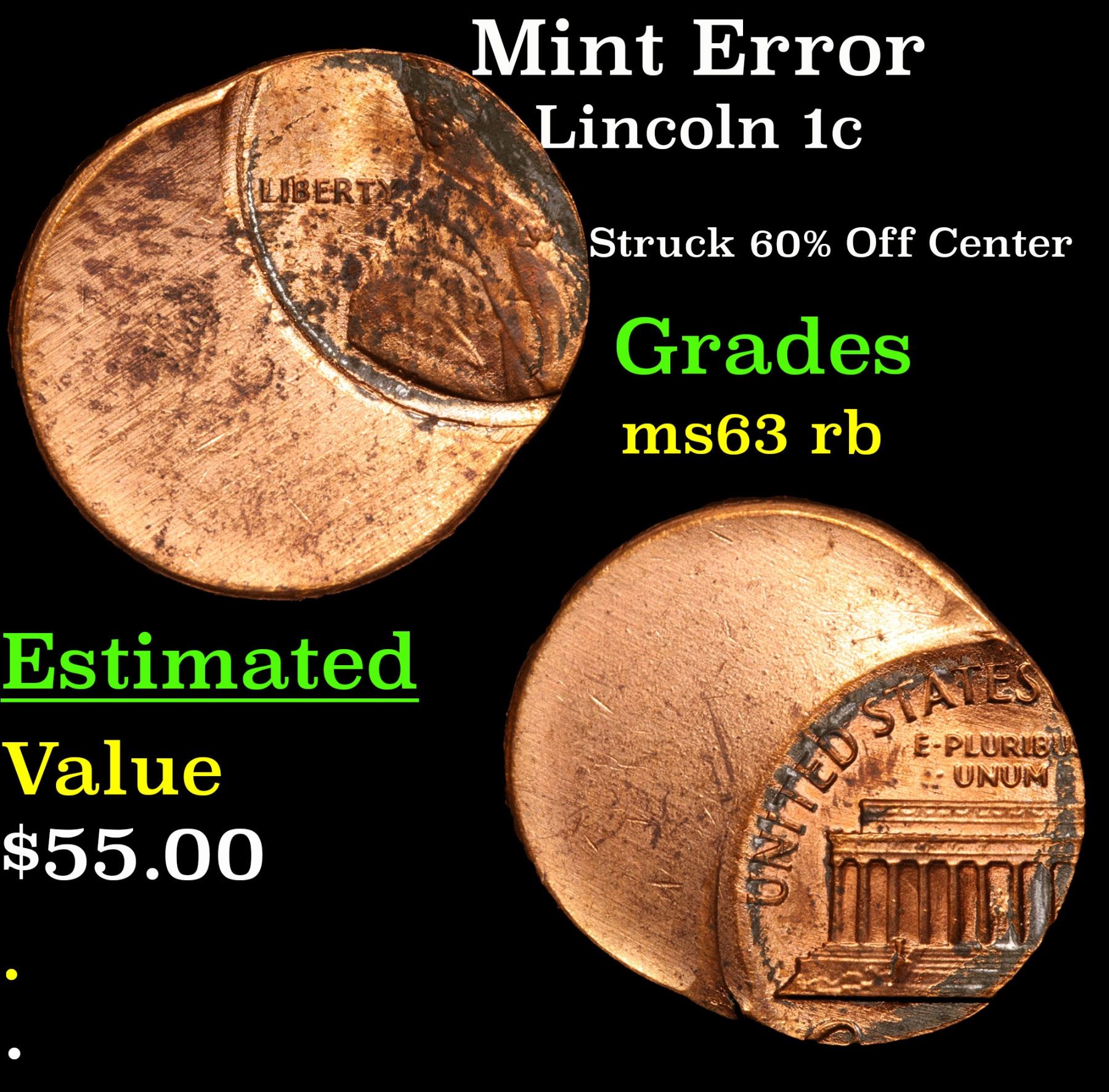 Mint Error Lincoln Cent 1c Grades Select Unc RB.