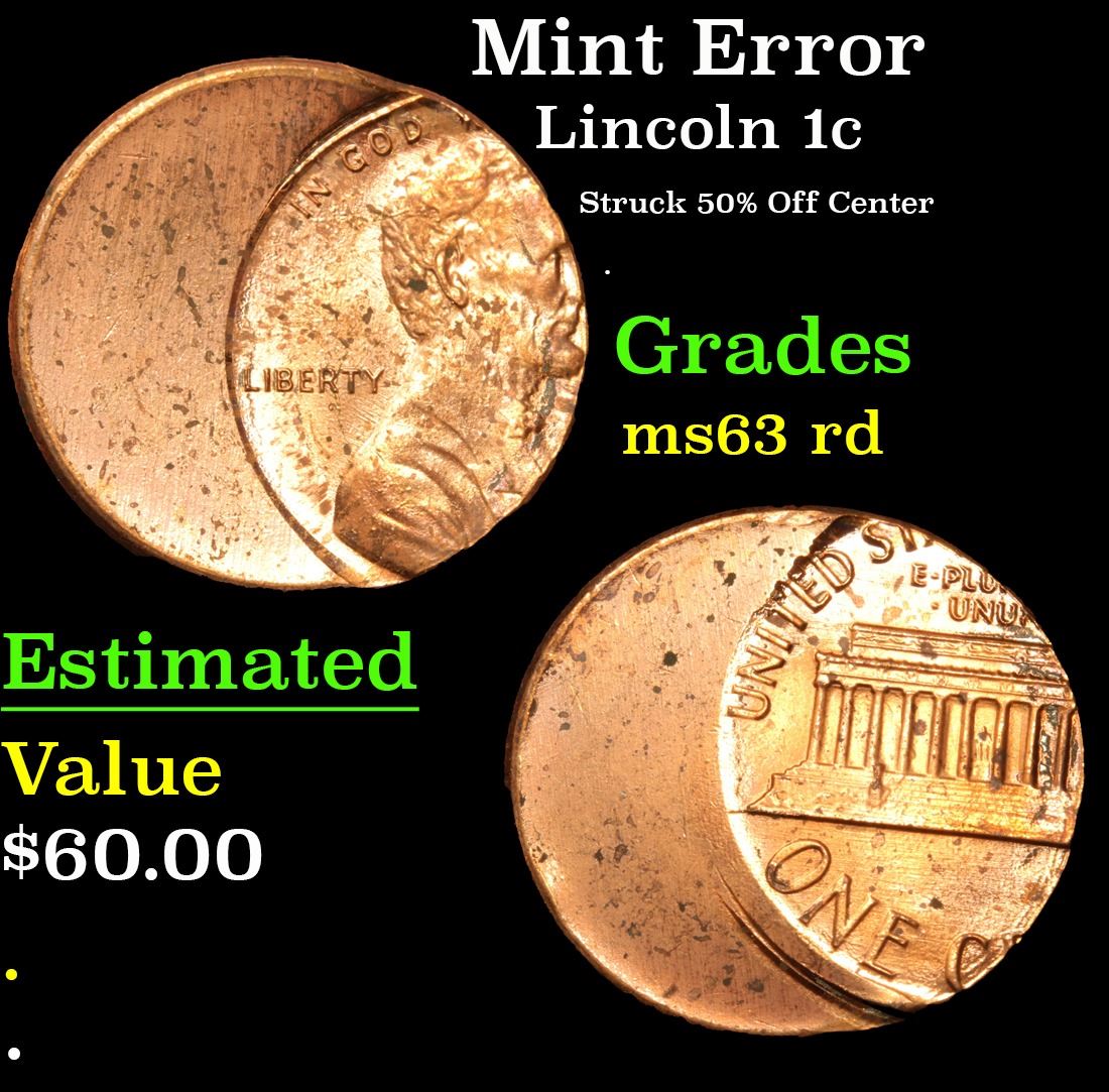 Mint Error Struck 50% Off Center . Lincoln Cent 1c Grades Select Unc RD.