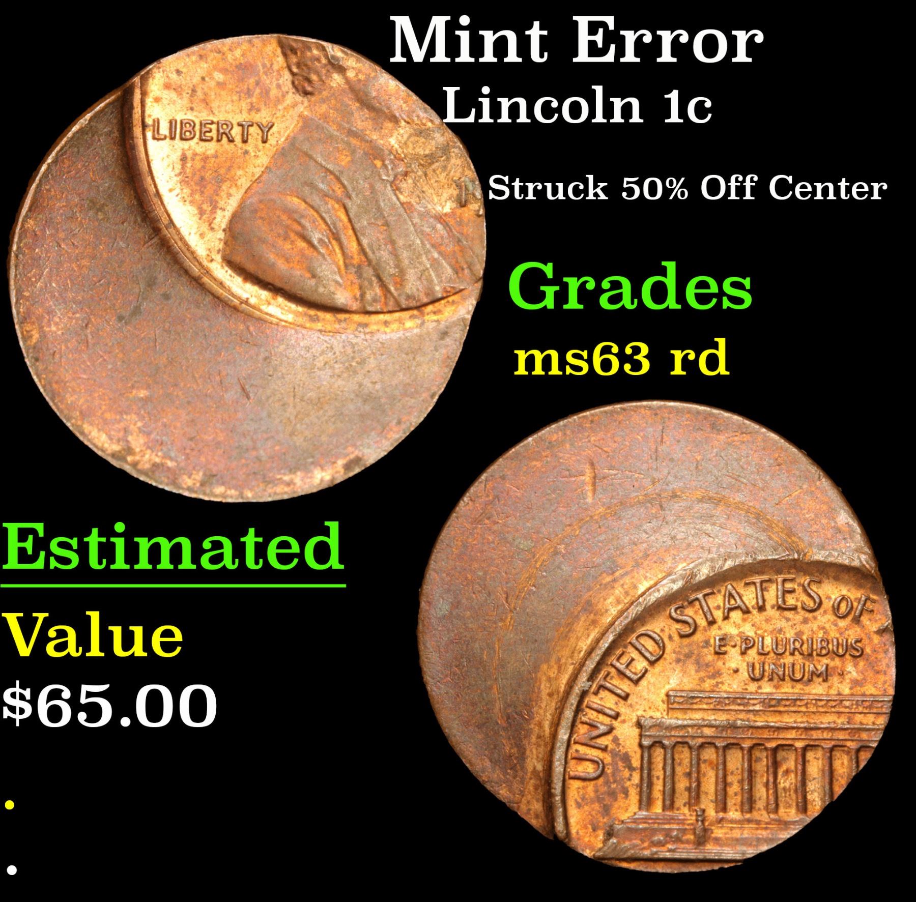 Mint Error Struck 50% Off Center . Lincoln Cent 1c Grades Select Unc RD.