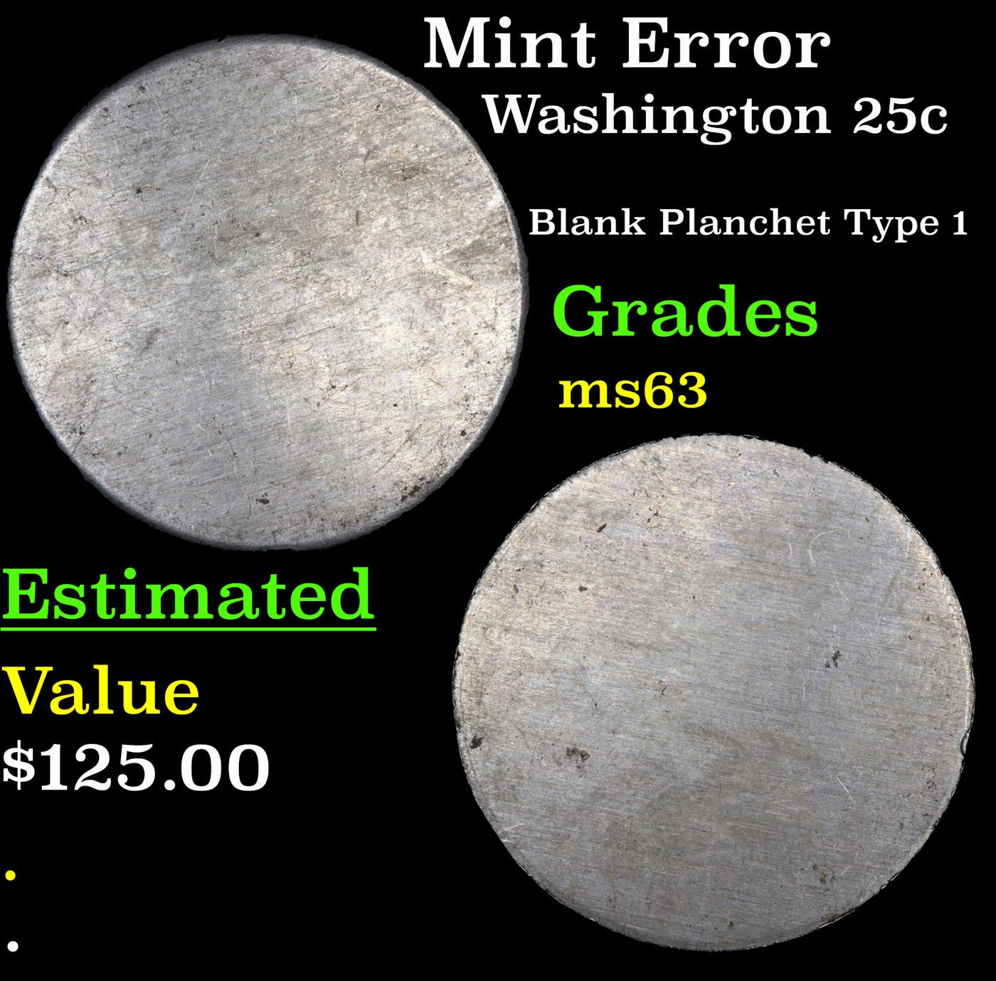 Mint Error Washington Quarter 25c Grades Select Unc.