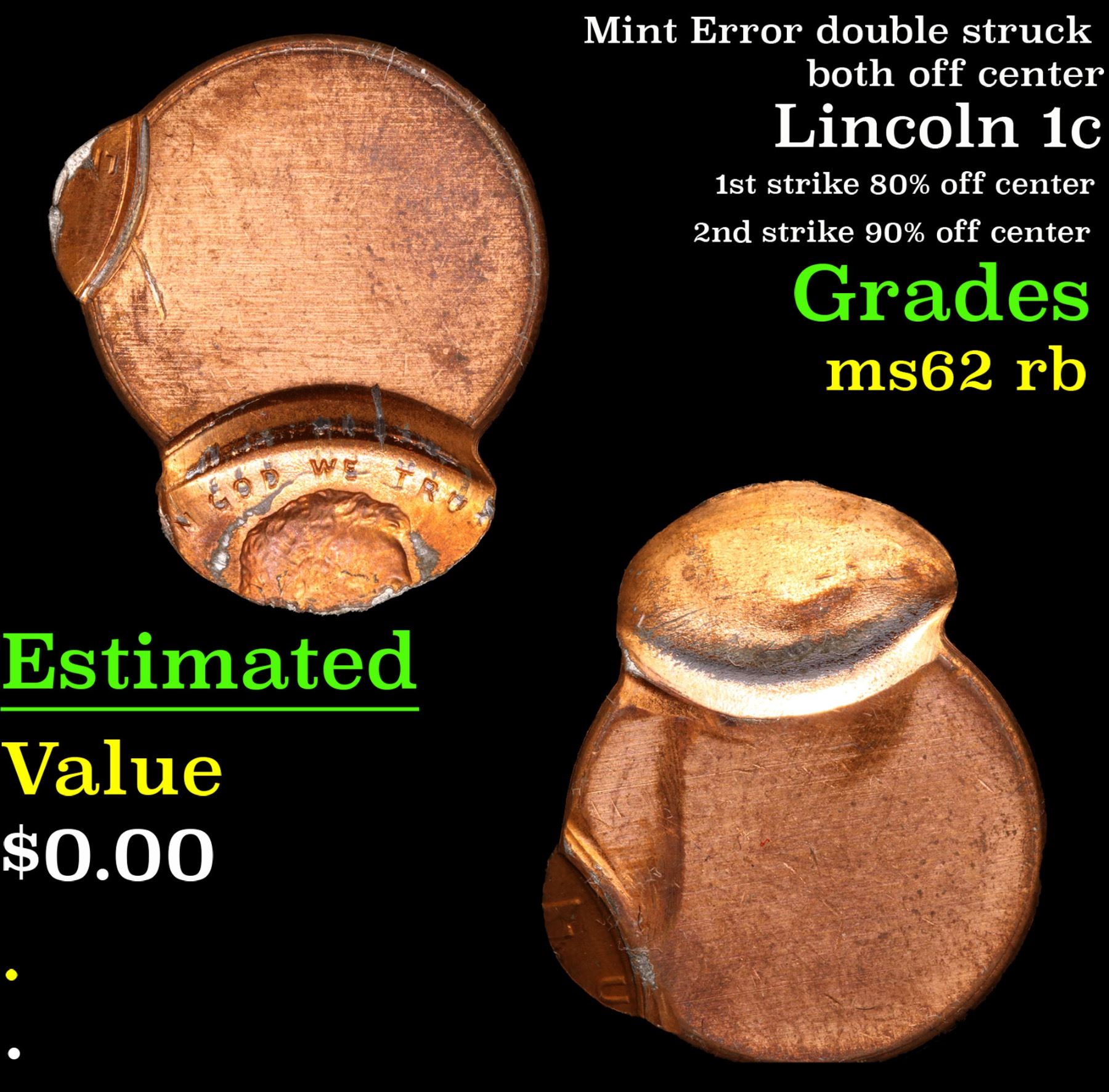 Mint Error double struck both off center 1st strike 80% off center 2nd strike 90% off center Lincoln Cent 1c Grades Select Unc RB. A Corey's Pick, Bid to Win Coin