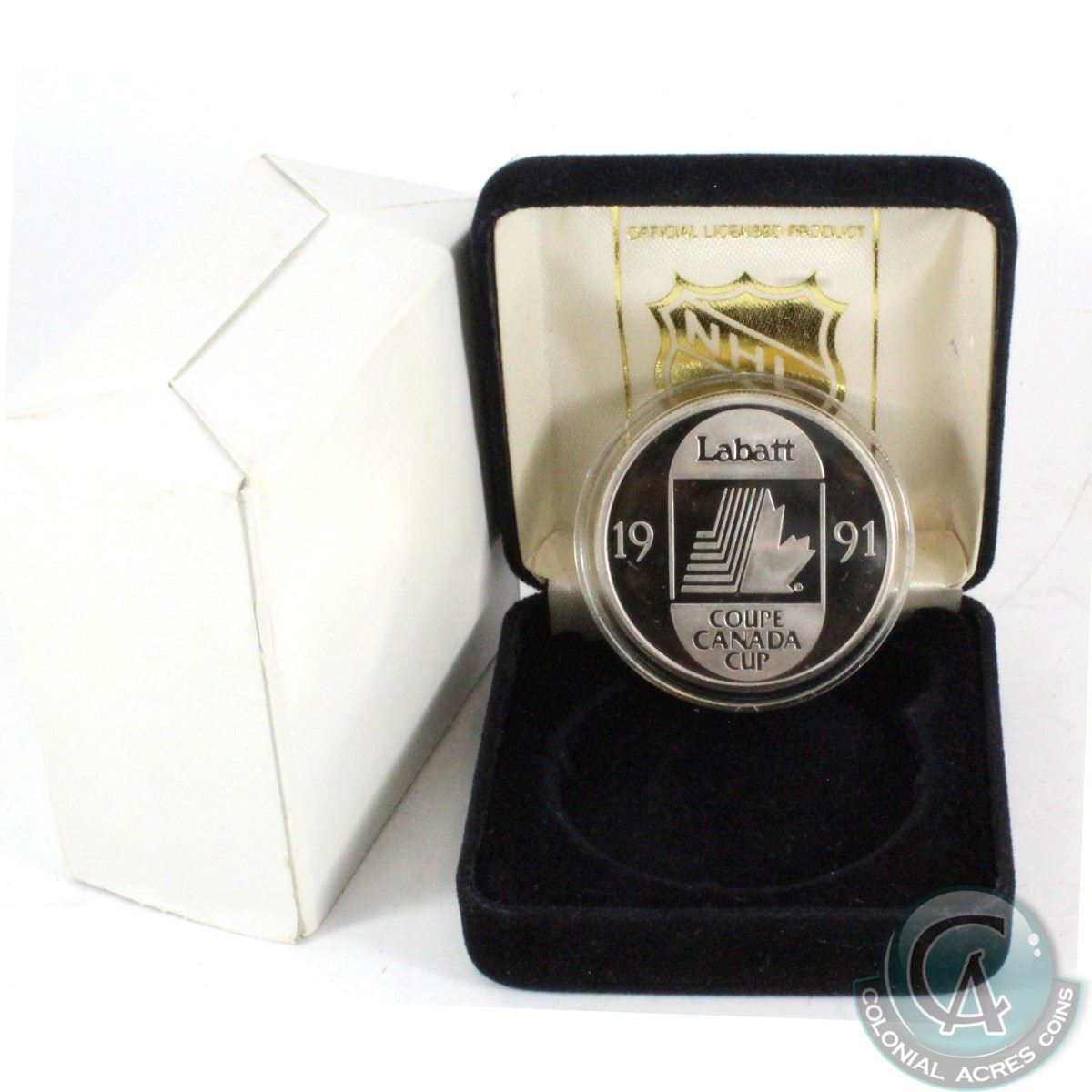 Mint Issue: 1991 1oz NHL Labatt Canada Cup Limited Edition Fine Silver Coin (Coin #392) Coin comes encapsulated in a black display box with the outer sleeve. (TAX Exempt)