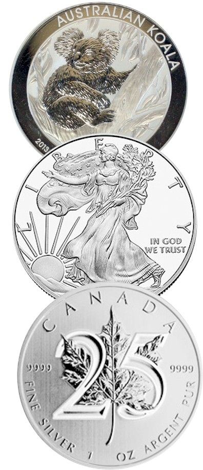 Mint Lot; includes 2013 $5 SML 25th Ann issue, 2013 Australia Koala 1/2oz & 2012 US Eagle $1 Silver oz. Lot of 3 pcs with the Silver eagle graded NGC MS69. Tax Exempt.