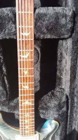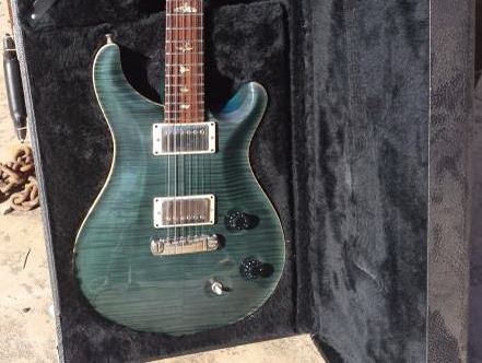 Guitar is a rare Maple wood top known as "10 top" which means it is a clear figured pattern across the entire face with no dead spots. The Maple is then dusted with a custom green jade color stain, sanded and then many layers of clear coats. It is an amazingly beautiful guitar and is Flawless!