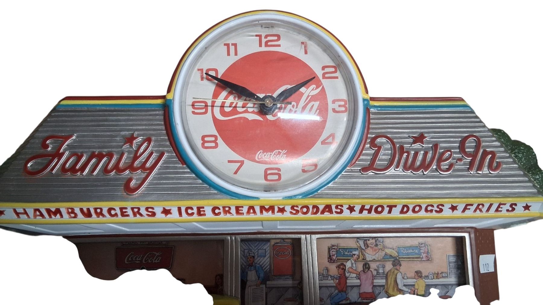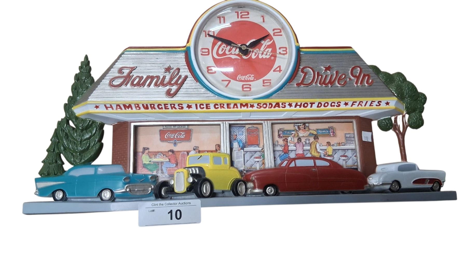 Mint condition 1985 Coca-Cola "American Graffiti drive-in clock working 20"x10"