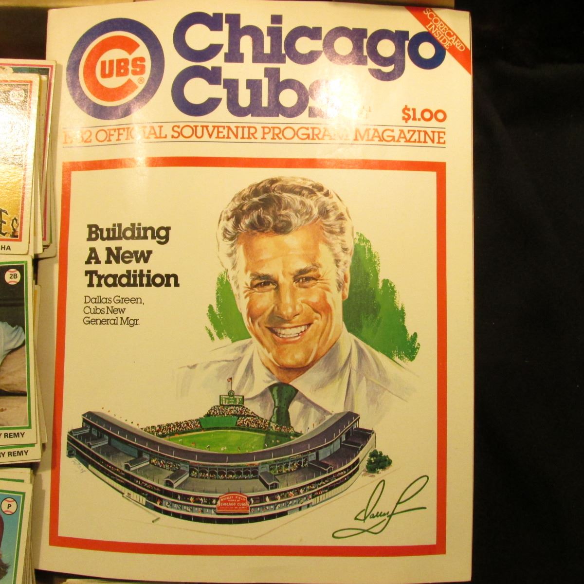 Mint condition, Vol.1 No.1 "Chicago Cubs 1982 Official Souvenir Program Magazine"; & 14" Card Stock