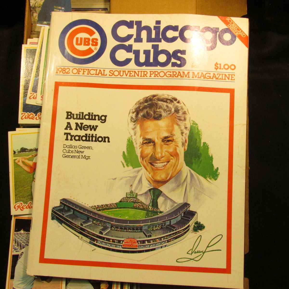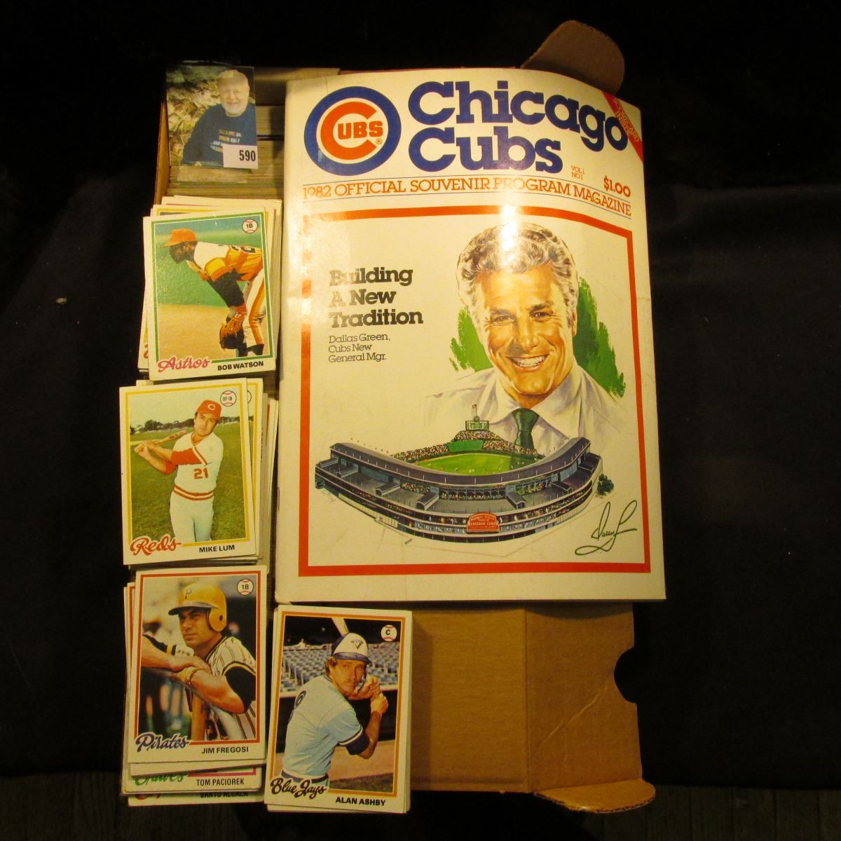 Mint condition, Vol.1 No.1 "Chicago Cubs 1982 Official Souvenir Program Magazine"; & 14" Card Stock Box full of 1978 Topps Baseball Cards