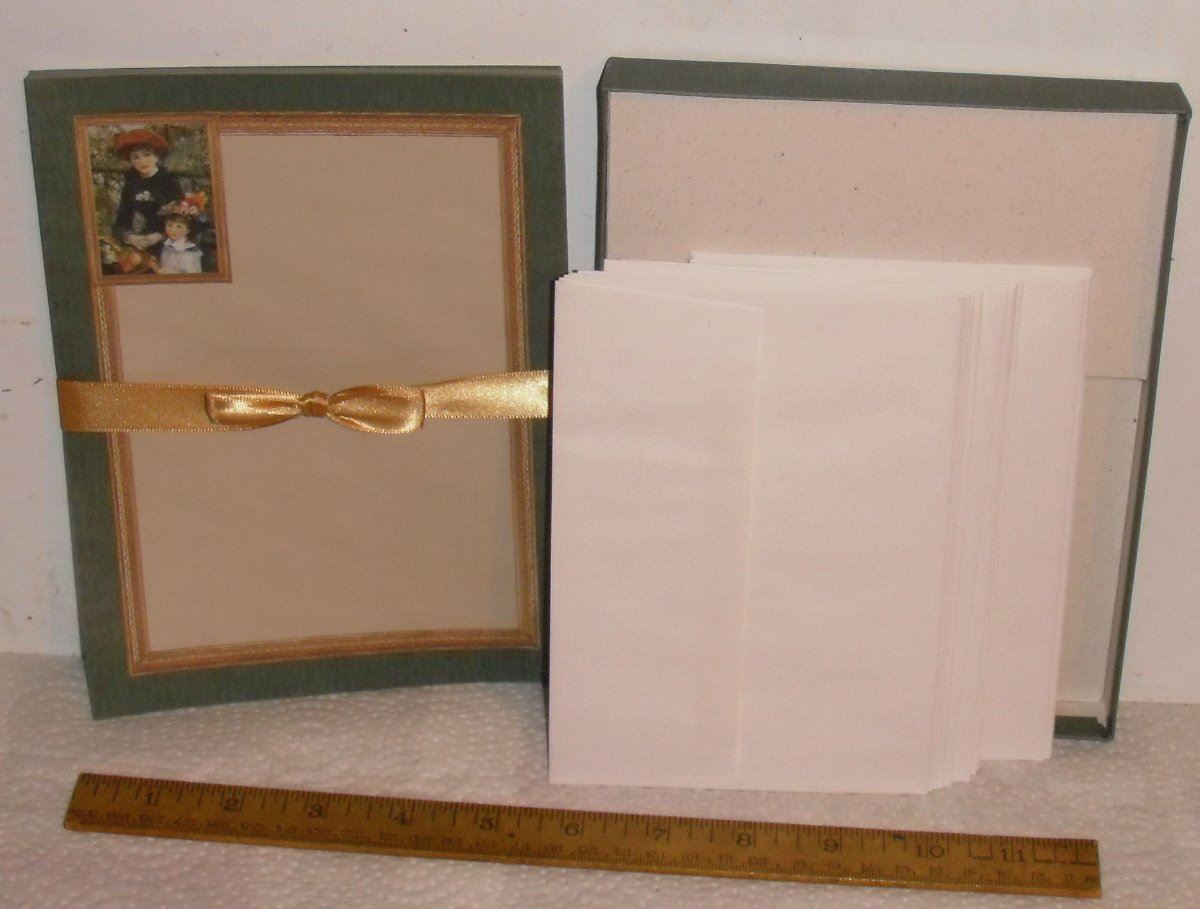 Mint just unwrapped old writing paper with Impressionist image + envelops