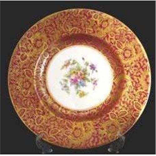Minton Brocade Cabinet Plate Cerise Overlaid with Gilt Flowers & Leaves The Centre White & Decorated with a Spray of Mixed Flowers