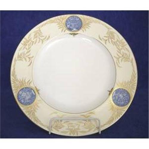 Minton Cabinet Plate Plain White Plate With A Gilded Border Inset With Three Blue Medallions No Backstamp But Came Out Of Mintons Museum (Also See Cabinet Plates, Plaques,Chargers, Unframed Plaques.Commemorative Ware.)