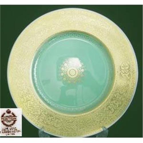 Minton Cabinet Plate Decorated With A Wide Border Of Acid Gold Decoration The Centre Green With A Central Motif Of Acid Gold On White Bone China c1951