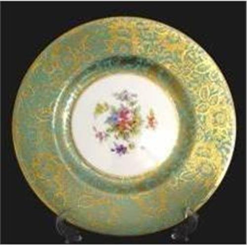 Minton Brocade Cabinet Plate Turquoise Overlaid with Gilt Flowers & Leaves The Centre White & Decorated with a Spray of Mixed Flowers