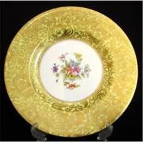Minton Brocade Cabinet Plate Yellow Overlaid with Gilt Flowers & Leaves The Centre White & Decorated with a Spray of Mixed Flowers