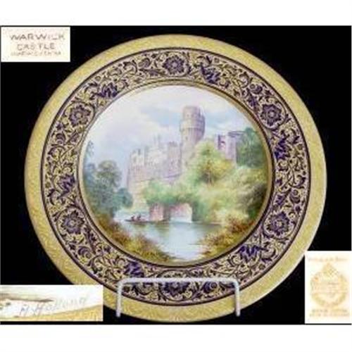 Minton Cabinet Plate The Centre Warwick Castle With A Dark Blue Border Heavily Gilded And A Gilt Rim Signed By The Artist A. Holland c1950s