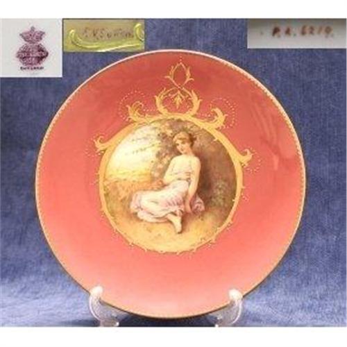Minton Cabinet Plate The Centre Decorated With A Scantily Clad Young Lady The Rim Of The Plate Pink Blush With Gilding And Raised Paste Gilding Signed By The Artist F. N. Sutton Dated 1903 (Boxed) (Also See Cabinet Plates, Plaques,Chargers, Unframed Plaques.Commemorative Ware.)