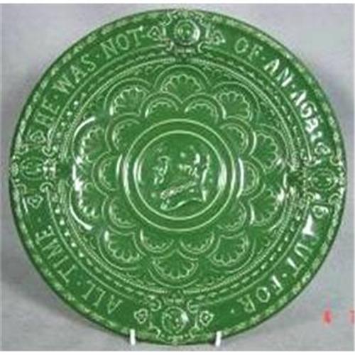 <tr><td>Title:Minton Green shakespear Plate (c1880)</td></tr>