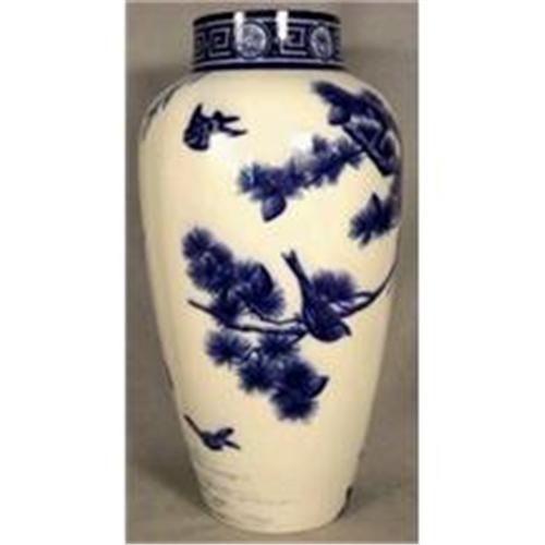 Minton Colbalt Blue / White Large Vase Measuring 600mm Decorated with Trees and Birds ( Some Restoration )