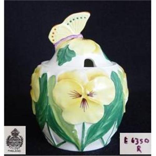 Minton Lidded Jam Pot Decorated with Yellow Pansies The Knob On The Lid Is A Butterfly c1891(Slight Flaking To Leaf)