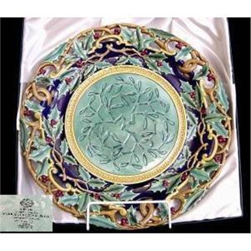 Minton Majolica Christmas Plate From The Archive Collection Limited Edition Of 250 This No 18 (Boxed & Cert)The Plate Is Decorated With Boughs Of Holly Forming The Rim Of the Plate The Centre Is Green With Impressed Sprig Of Mistletoe.(Slight Repair)
