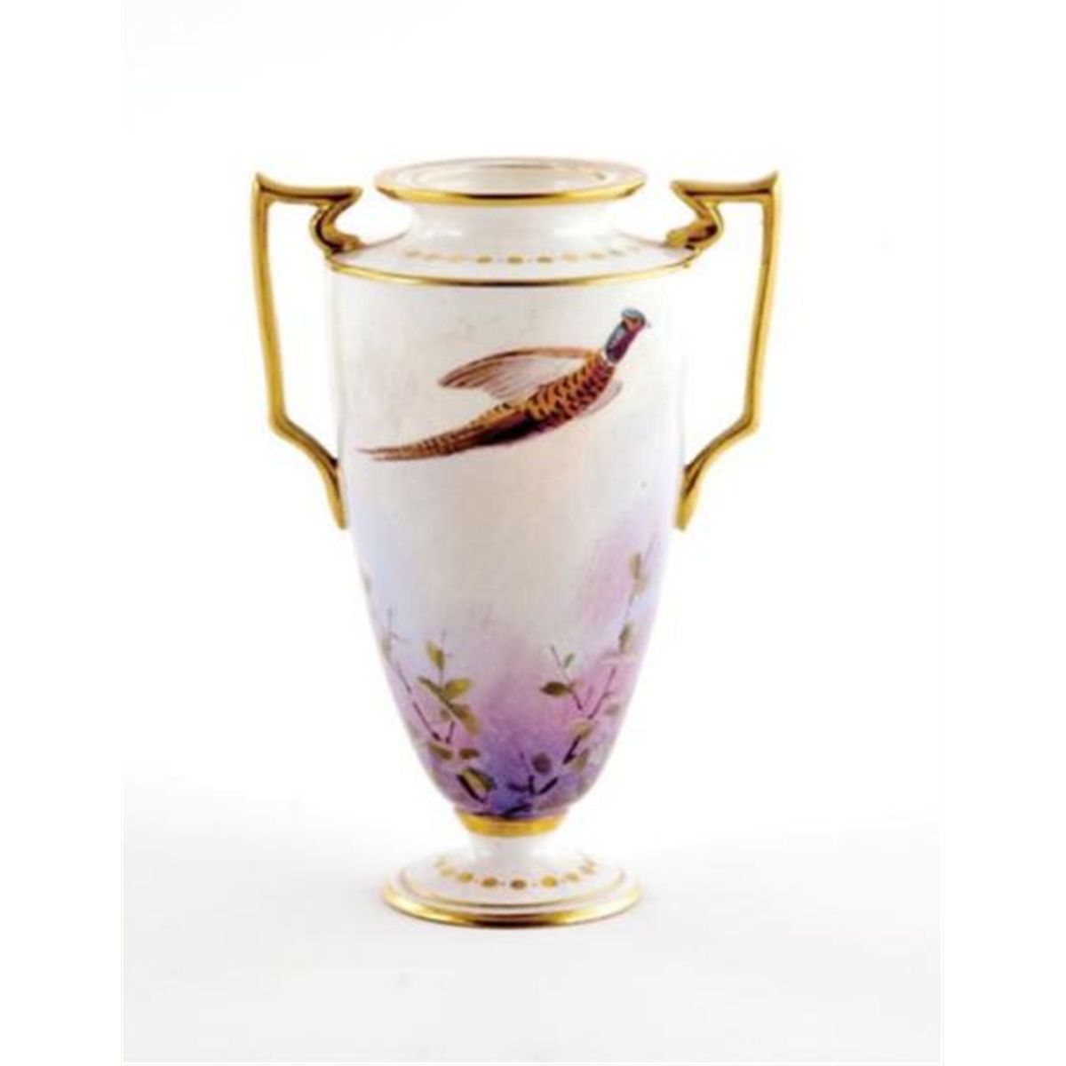 Minton Painted Porcelain Vase, J. E. Dean,Circa 1920 _urn form painted with scene of rising pheasant, signed J.E. Dean and Minton mark on base. _H5" __