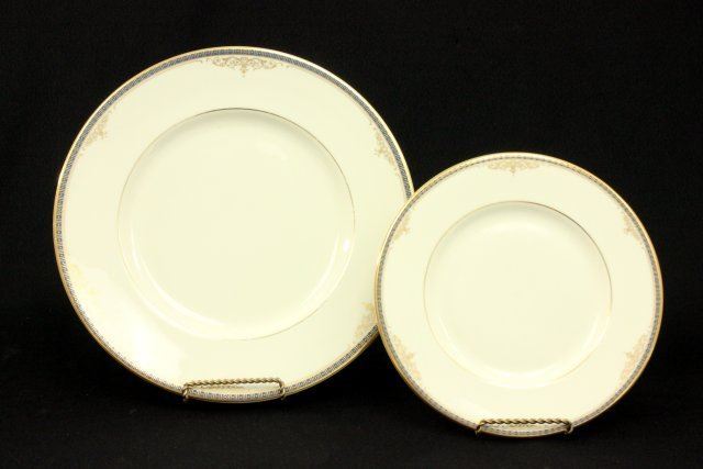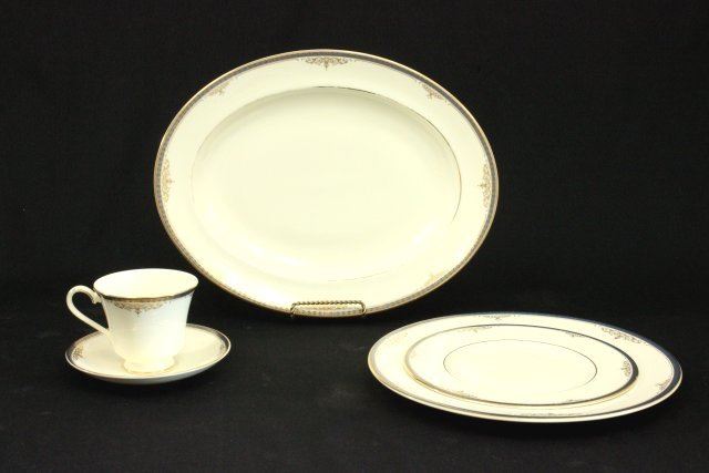 Royal Doulton 1985. Including 2 platters, 16 dinner plates, 12 dessert plates, 12 cups and saucers. 54 pieces total. Some wear to gilding.