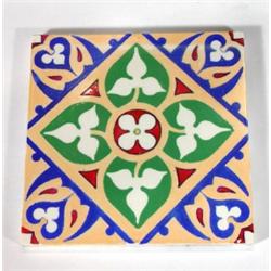 Minton Pugin style Arts and Crafts pottery tile, marks decorated with stylised flowers, 15cm long