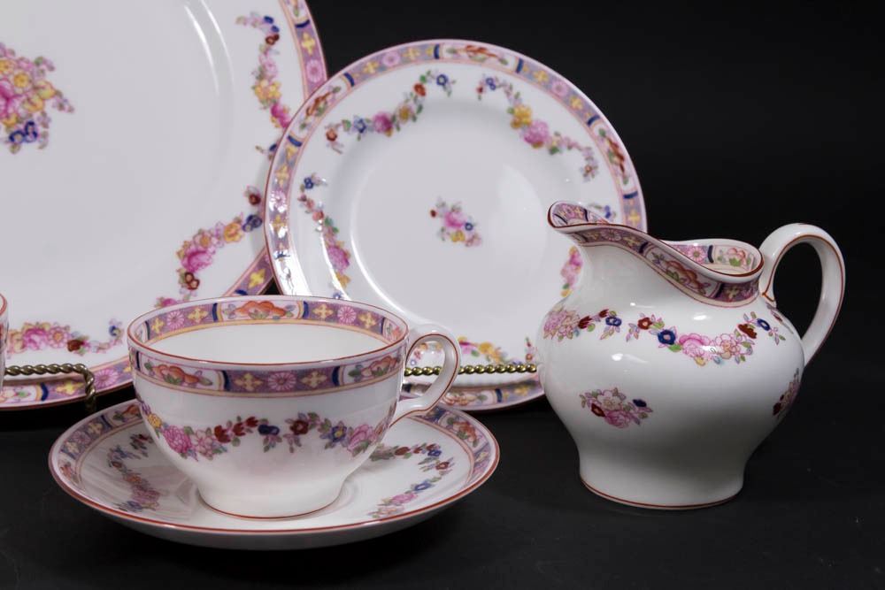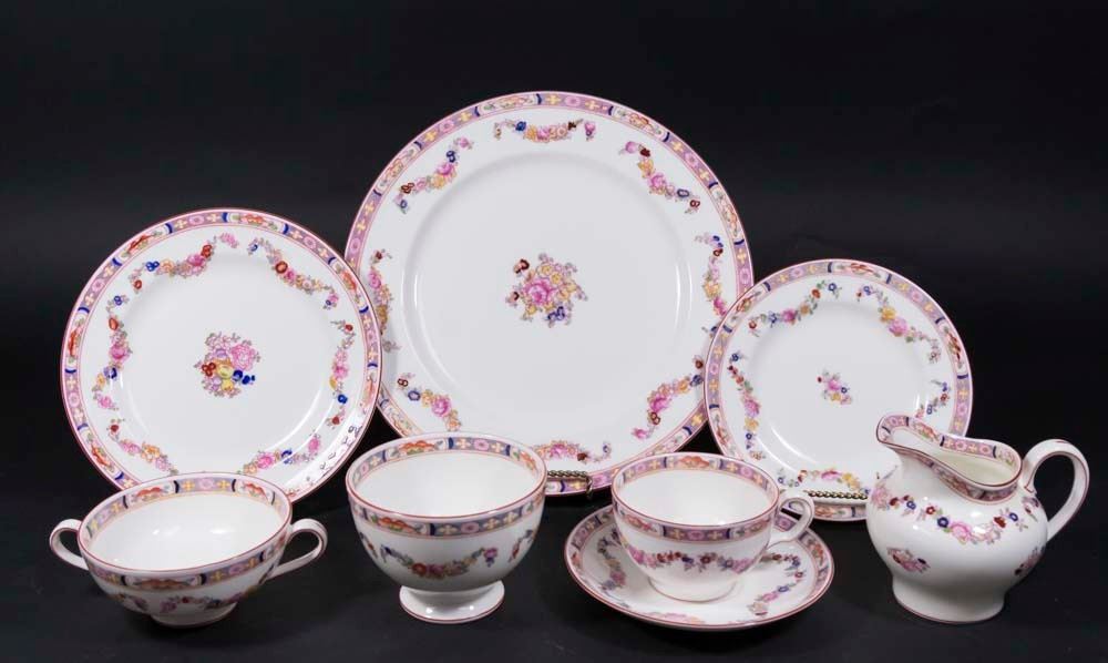 Including 17-10 1/2" dinner plates, 12-7 3/4" plates, 12-6 1/2" plates, 12 bouillon cups, and 16 cups & saucers. 97 pieces.