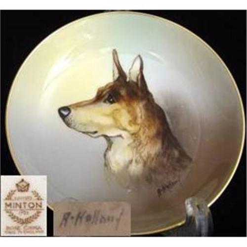 Minton Small Dish Signed By A Holland The centre Decorated With A German Shepherd 1960
