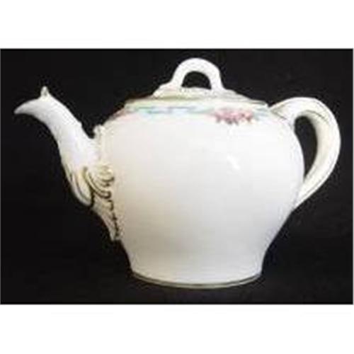 Minton (Unmarked) Small Teapot Decorated with Pink Roses & Turquoise Scrolls Gilding to Spout Lid & Handle (Small Chips to Inside & Outside of Rim) c1880