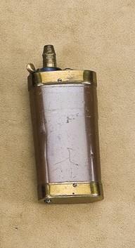 Minty Dixon and Sons pistol flask, approx. 3” long by approx. 1” wide showing a two cavity body; one for the balls with swiveling cover that is marked “Dixon & Sons, Sheffield” with the other compartment housing the powder with brass spout and blued release spring. Would go nicely with a casing of a fine English pistol or pair. Est.: $250-$500.